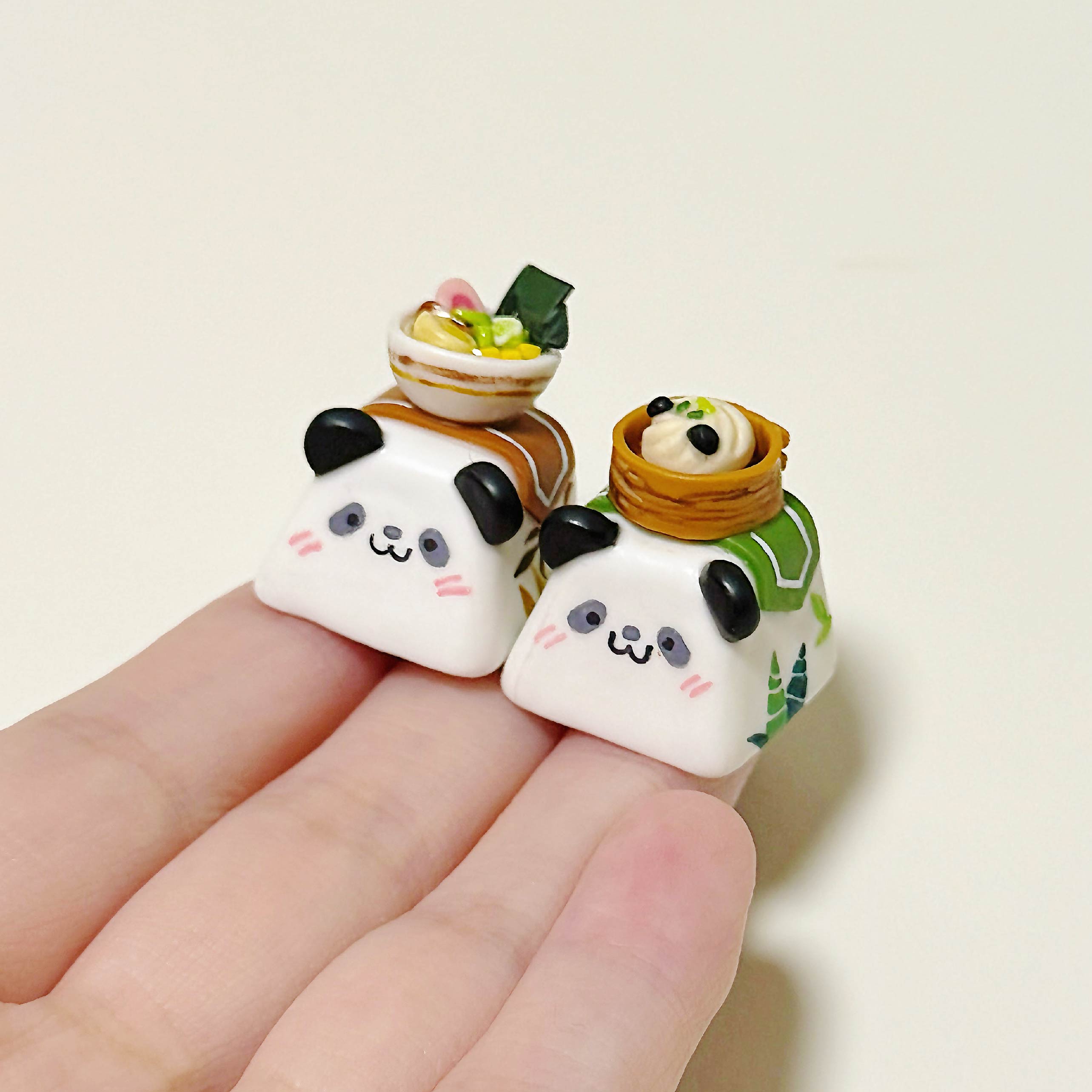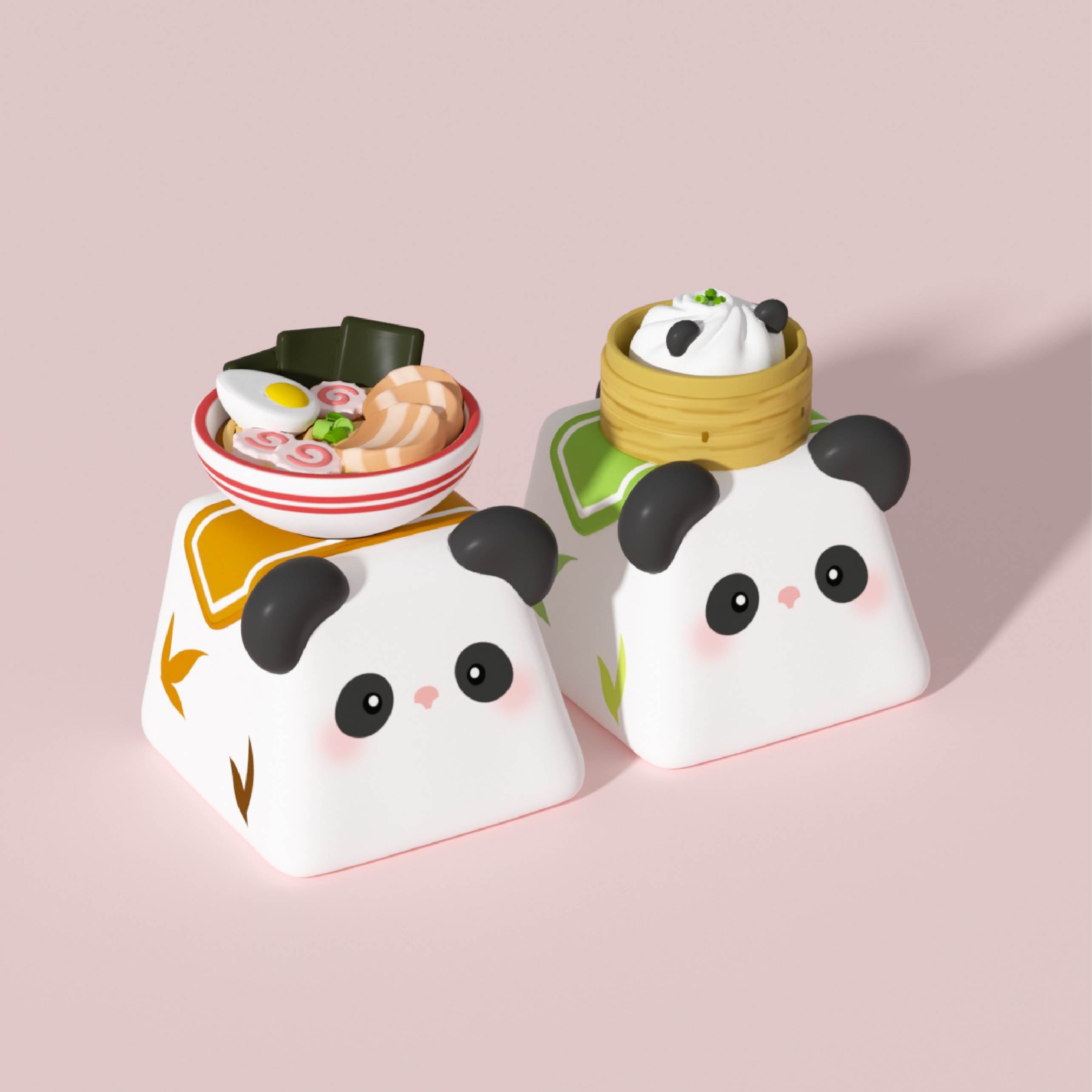これらのキーキャップは、「小さなパンダがキーボードの上でおいしい食べ物を出してくれたらどうなるだろう?」というシンプルな考えからインスピレーションを得ました。