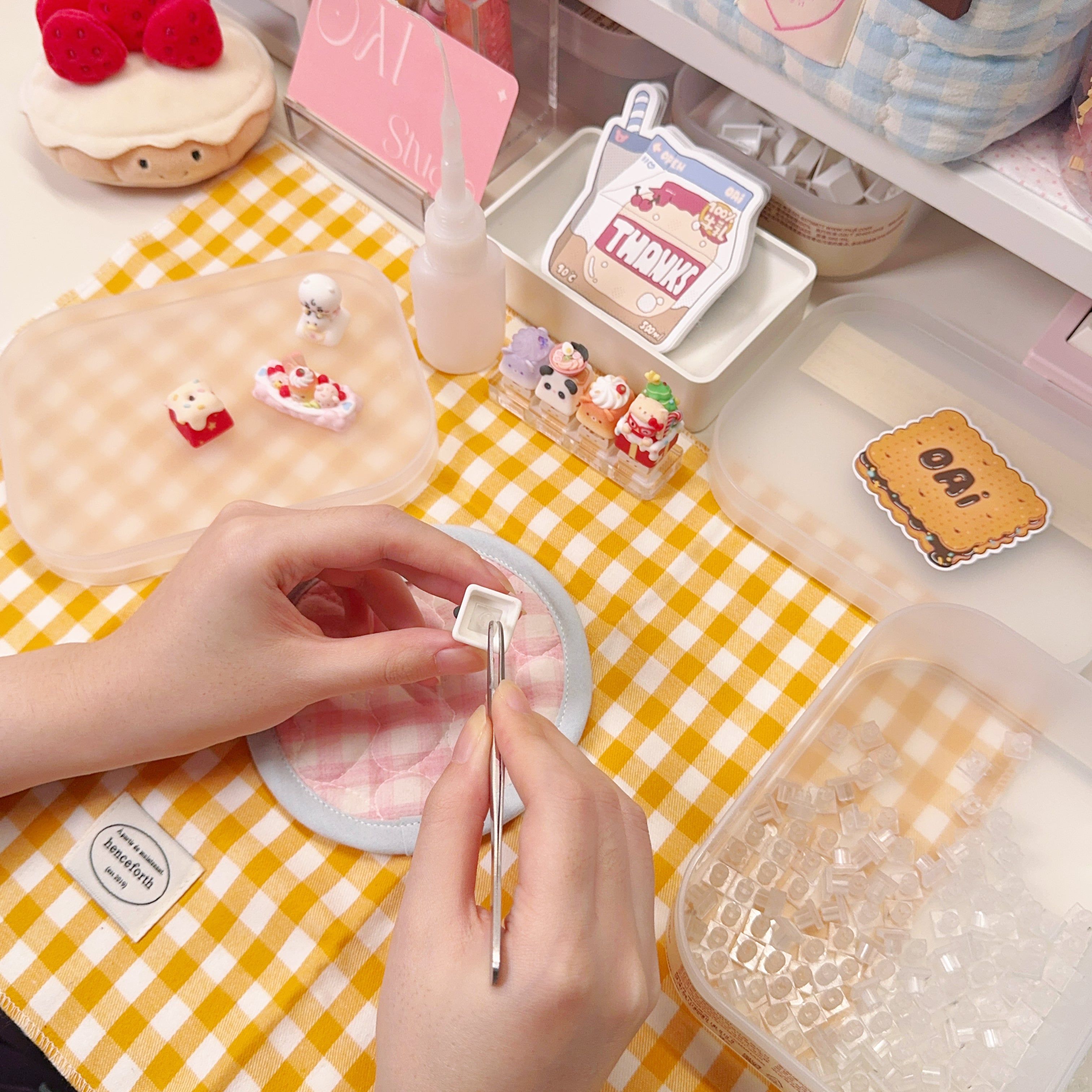 Technology finishes the form, but only hands can give it life. Each piece returns to the white-and-pink desk for manual sanding and detail refinement. This ensures that every keycap feels as good as it looks.