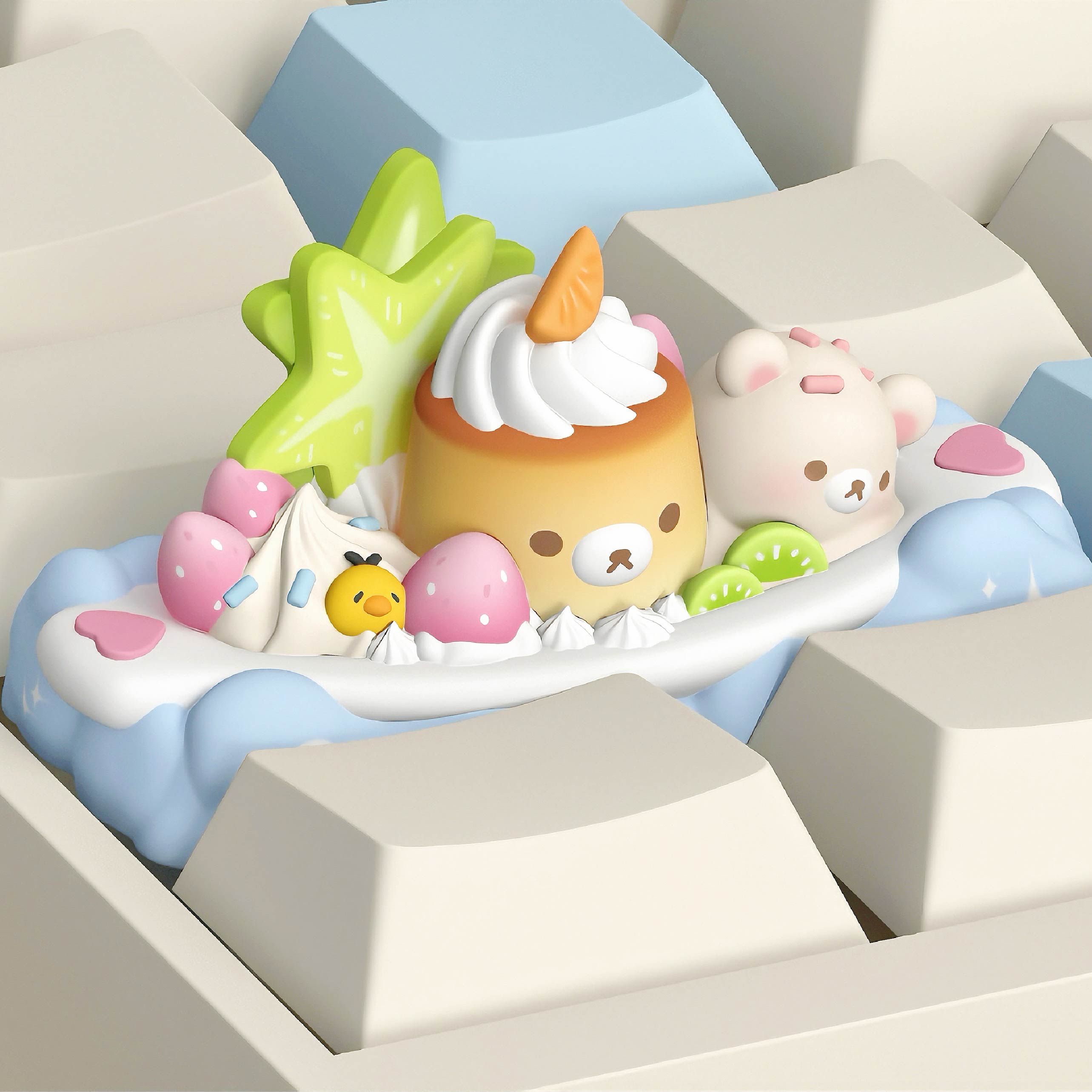 Creamy Bear "Pudding Boat" Artisan Keycap - 3D Color Printed & Hand-Finished | Oai Studio